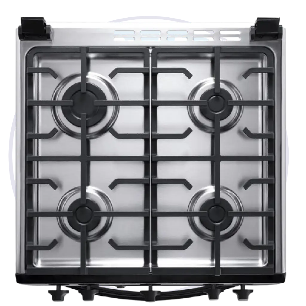 🍳 Características adicionales: Quemador rápido + 3 semi rápidos, parrillas de hierro fundido, tapa de vidrio templado, luz en horno, doble vidrio templado, tecnología ReallyClean, TermoPrecisión
