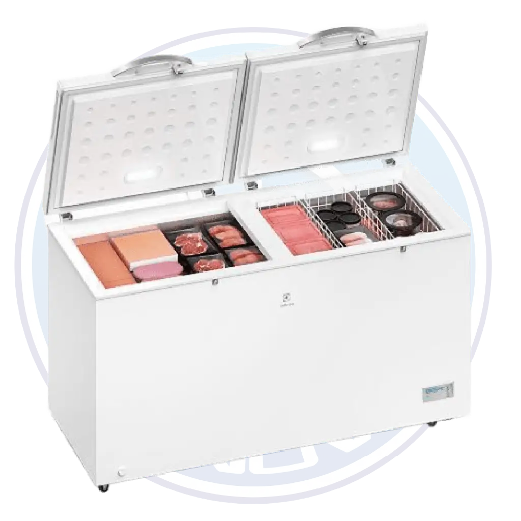 Congelador Electrolux de 508 litros con doble tapa, función dual, Turbo Freezing y gran capacidad ideal para uso comercial intensivo.