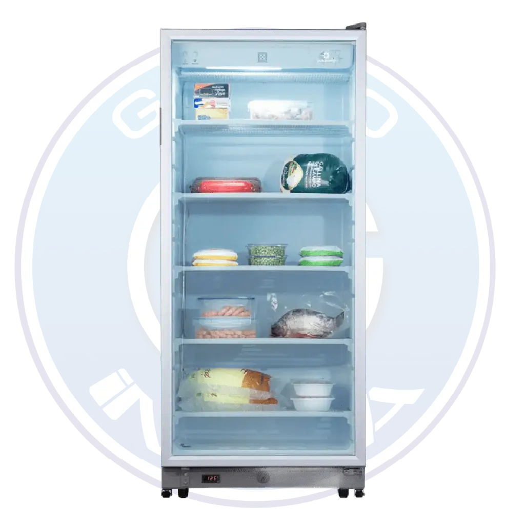 Su diseño vertical tipo vitrina con puerta de triple vidrio templado facilita la visualización del contenido sin necesidad de abrir el equipo, ayudando a mantener la temperatura interna y mejorar la eficiencia energética.