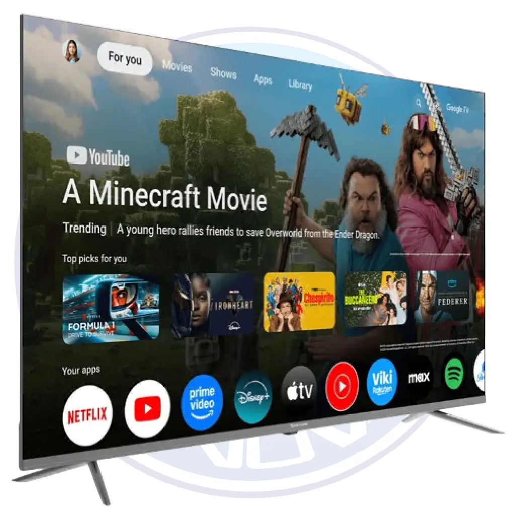 Integra el sistema Google TV, que permite acceder fácilmente a aplicaciones como Netflix, YouTube y Prime Video, con una interfaz intuitiva y recomendaciones personalizadas según tus gustos.