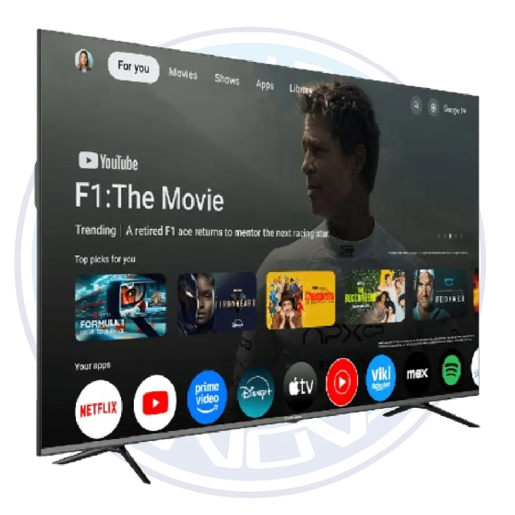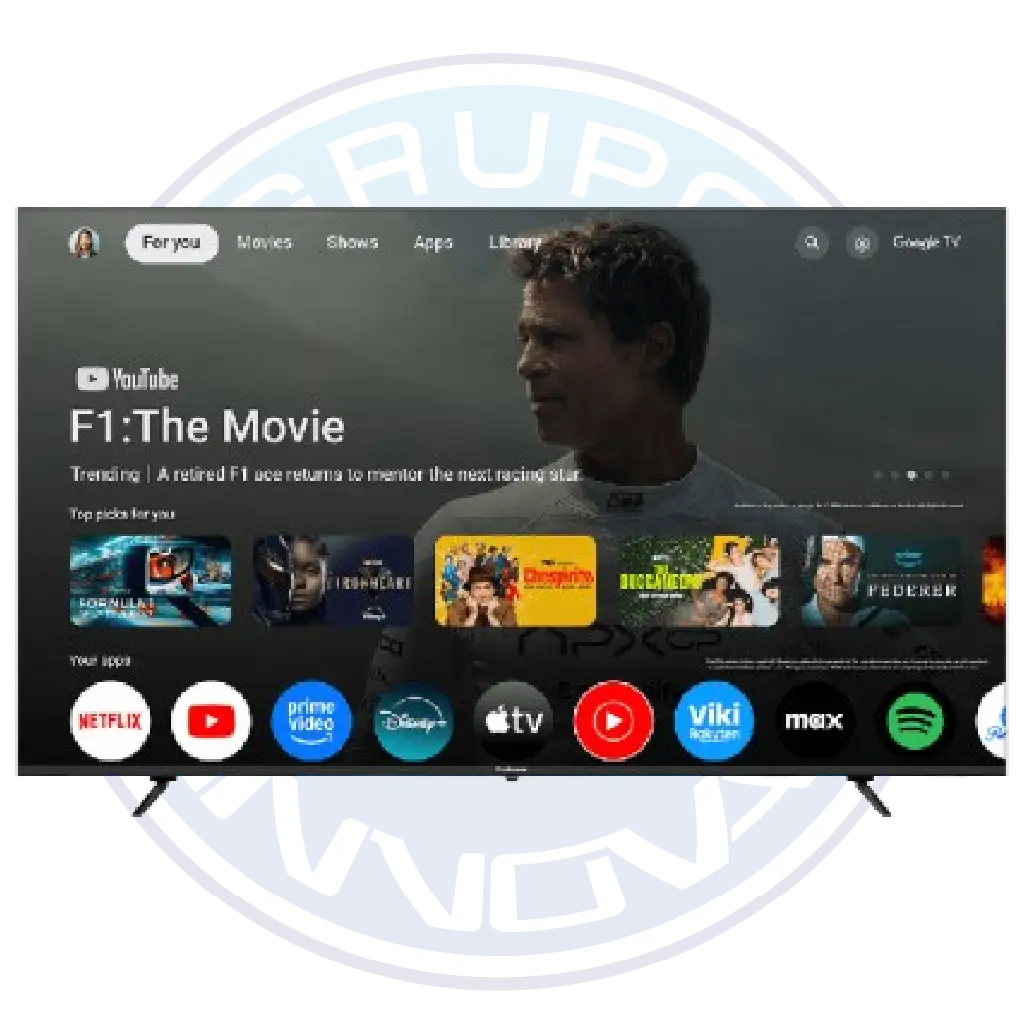 Integra el sistema Google TV, que centraliza todas tus apps favoritas como Netflix, YouTube y Prime Video, ofreciendo contenido personalizado y navegación intuitiva.