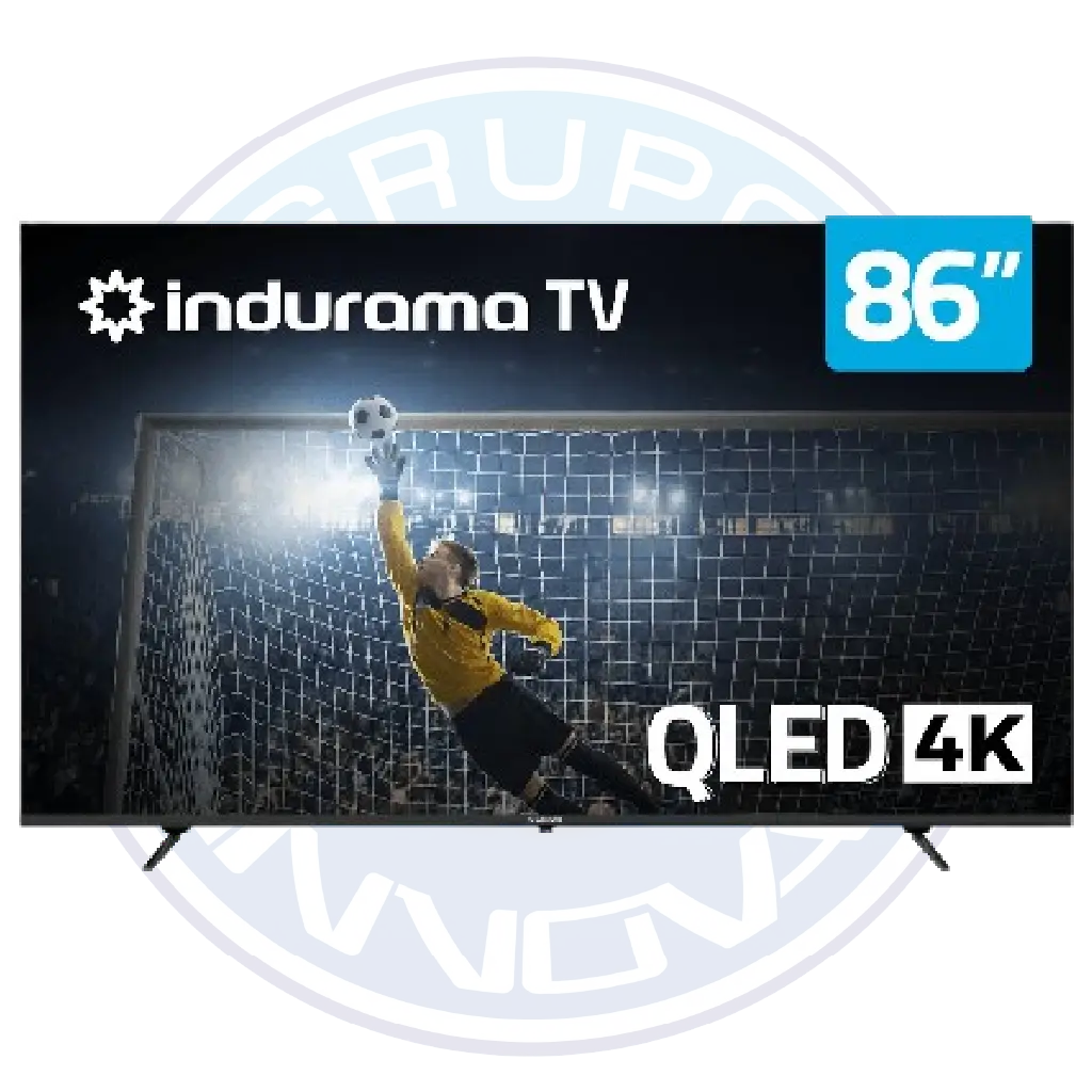 Smart TV Indurama de 86 pulgadas con tecnología QLED, resolución 4K UHD, Google TV, Dolby Vision, Dolby Atmos y diseño sin bordes para una experiencia premium.